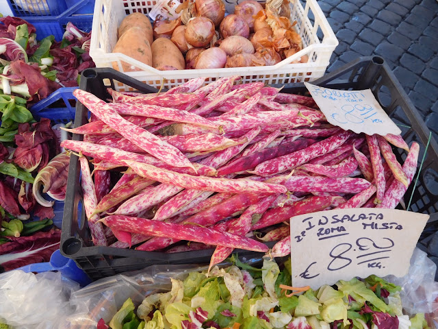 Another sunny, warm, blue sky day - perfect for exploring Rome. We spent four hours doing Rick Steves’ Heart of Rome walk. I forgot my headphones, but I held my phone up next to my ear and it worked almost as well. We started out in Campo de’ Fiori. There was a huge fruit and vegetable market in this piazza. There were also vendors selling spice mixes, pasta, and souvenir bottles of limoncello and other colorful beverages..