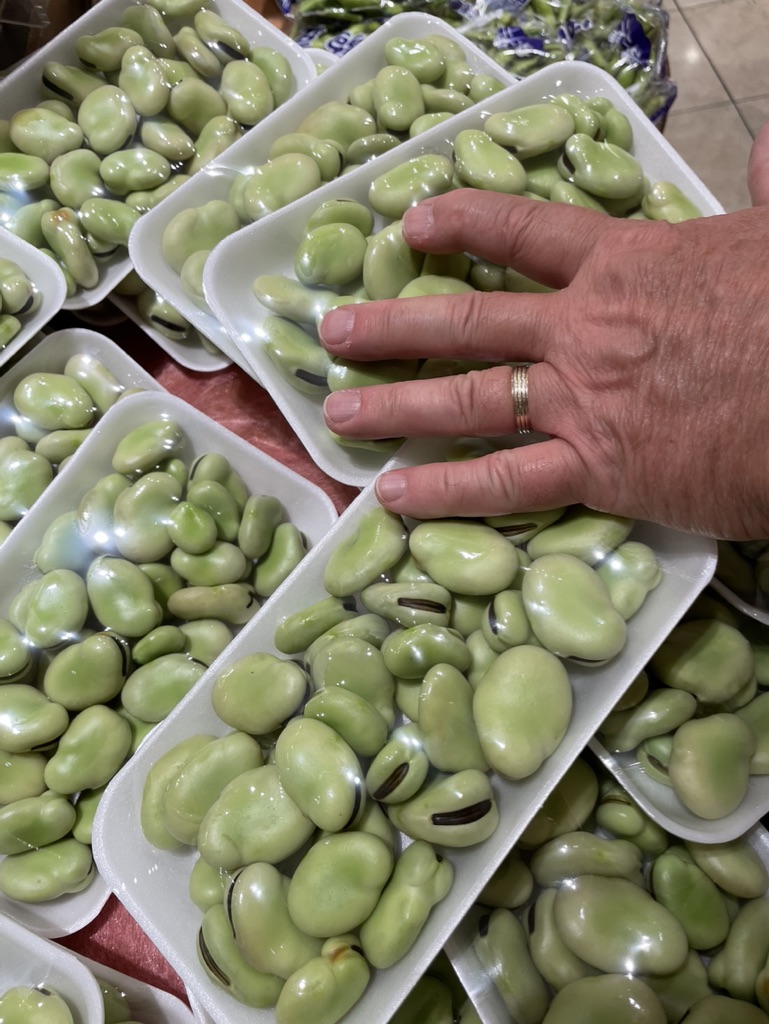 And speaking of "hands," Ken is channeling George Costanza here, when George was a hand model. In this case, Ken is showing us the scale of these enormous beans we found in the grocery store in the basement of the Keio Department Store.