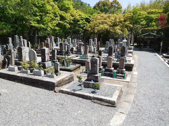 Hundreds of grave markers, found in various parts of Arashiyama, were moved to this cemetery and placed facing Buddha, to honor the dead